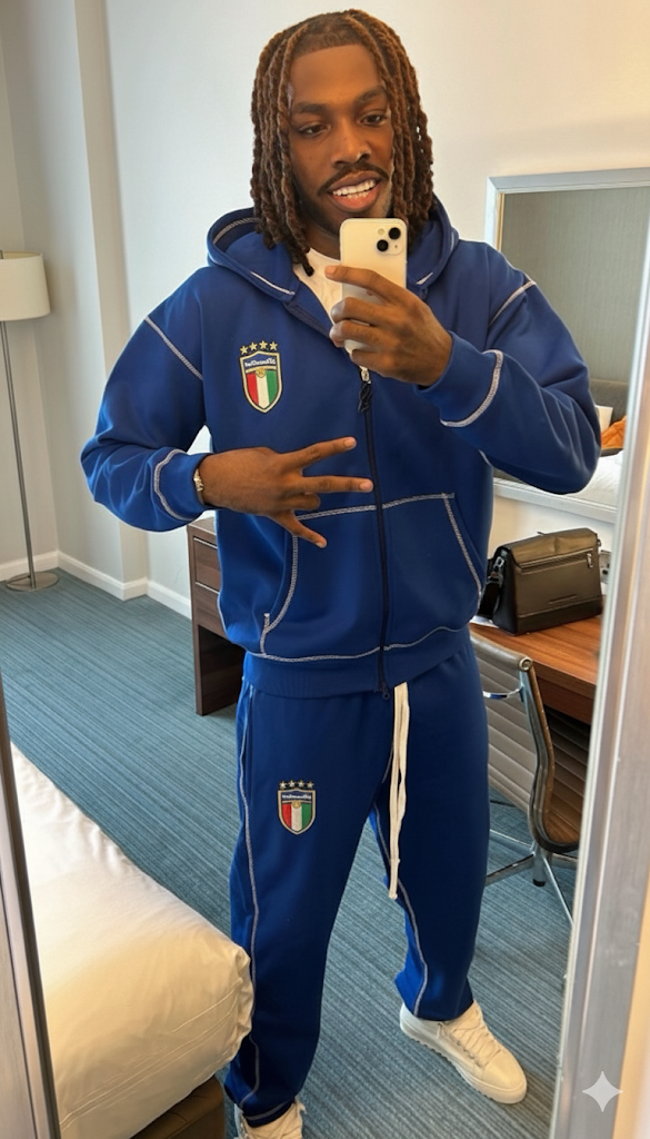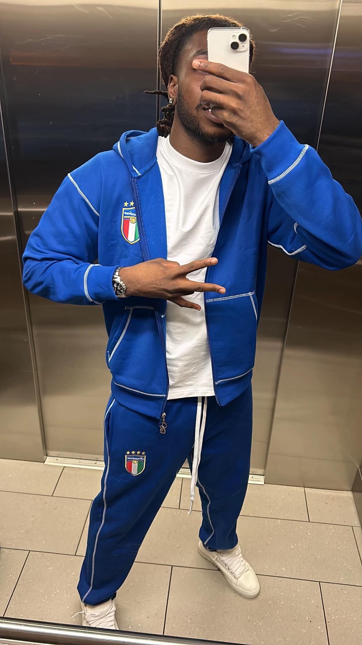 Introducing the ITALY TRACKSUIT SET : engineered for all-day comfort and street-ready confidence. This vibrant Royal Blue set is your ultimate wardrobe staple, guaranteeing a cohesive, high-impact look with zero effort.